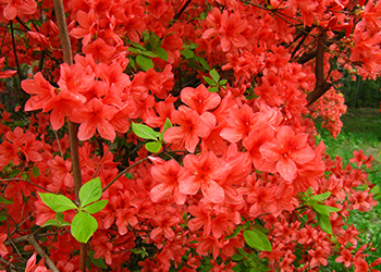 赤城神社本宮(三夜沢町)の参道松並木(約3㎞)とともに咲く様子はコントラストが見事。また、鍋割高原から鍋割山、荒山高原など各山々でも群生地があります。見頃は4月下旬(赤城神社参道松並木)から5月下旬(山頂方面)