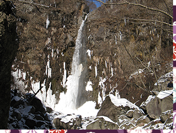 群馬県の指定文化財(名勝)に指定された粕川上流に位置する、落差32mの赤城山麗で最も大きな滝。駐車場から滝までは約40分の道のりで、途中には洞穴の下に本殿が建つ滝沢不動尊や岩屋などの見所があります。